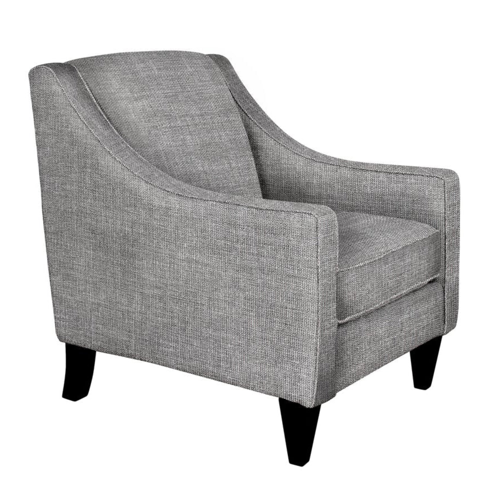 The Jenna Chair offers a perfect balance of classic style and everyday comfort. With clean lines, gently sloped arms, and tailored piping detail, this chair brings a refined yet relaxed look to any living space. Its supportive seat cushion and structured back create a comfortable place to sit while maintaining a polished silhouette. Supportive box seat cushion with foam core and fibre wrap. Fibre-filled back cushion for comfort and support.