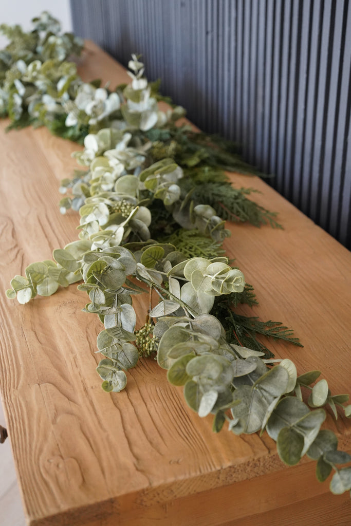 Looking for a classic, year-round garland that pairs perfectly with our evergreen collection? Look no further than our Seeded Eucalyptus Garland. Beautiful on it's own, or layered in with any of our realistic winter greens and garlands.