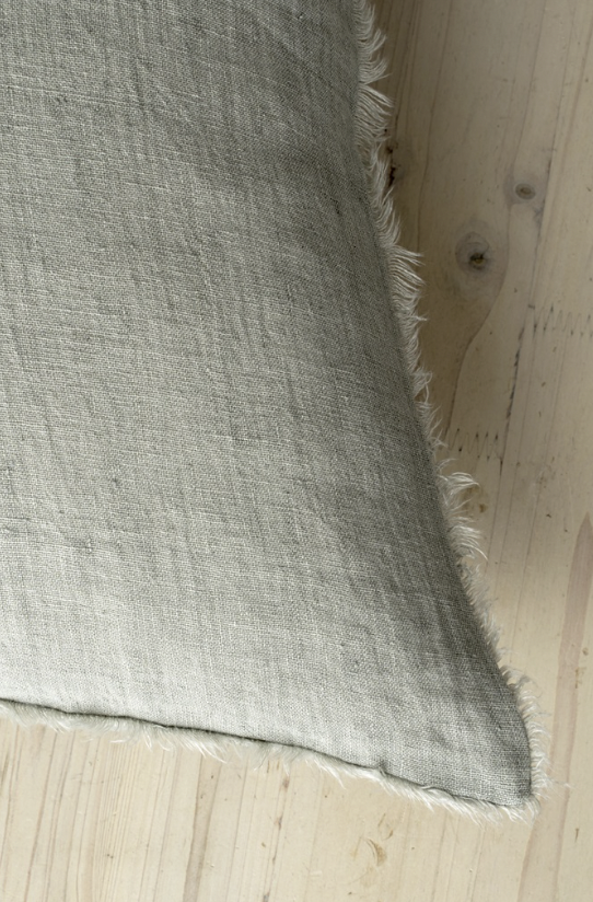Classic linen is updated with a frayed edge, making them beautiful standalone cushions or backdrops for layering.