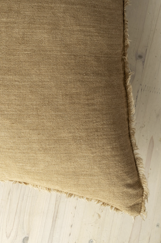 Classic linen is updated with a frayed edge, making them beautiful standalone cushions or backdrops for layering.