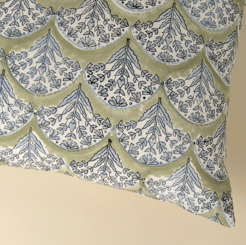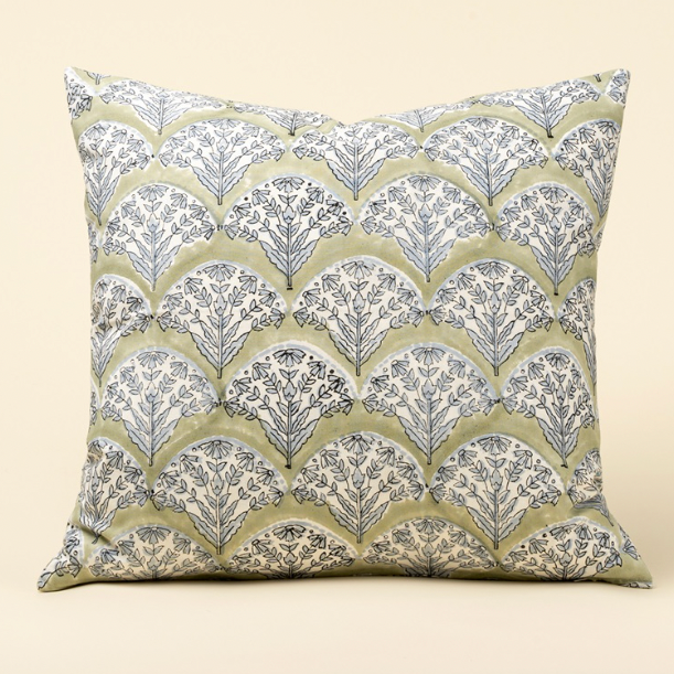 Sakura Block Print Pillow Green 20x20