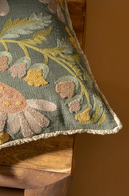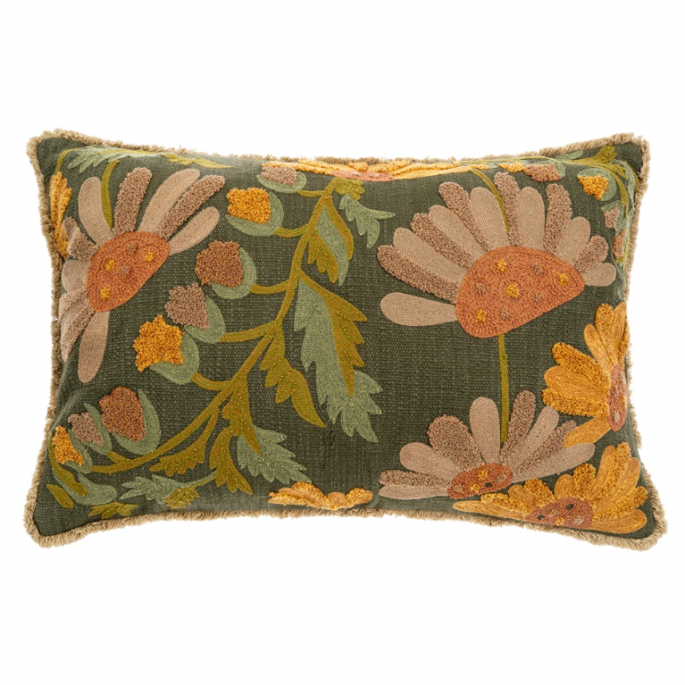 Bring vibrancy and warmth to your space with the Valley Embroidered Pillow. Designed to brighten up any room, this playful lumbar pillow features a hand-embroidered botanical pattern in lively, warm tones. Its intricate embroidery adds texture and charm, making it a statement piece that effortlessly enhances sofas, beds, or accent chairs. Whether used to introduce colour or to complement an existing palette, this pillow infuses any space with energy and personality.